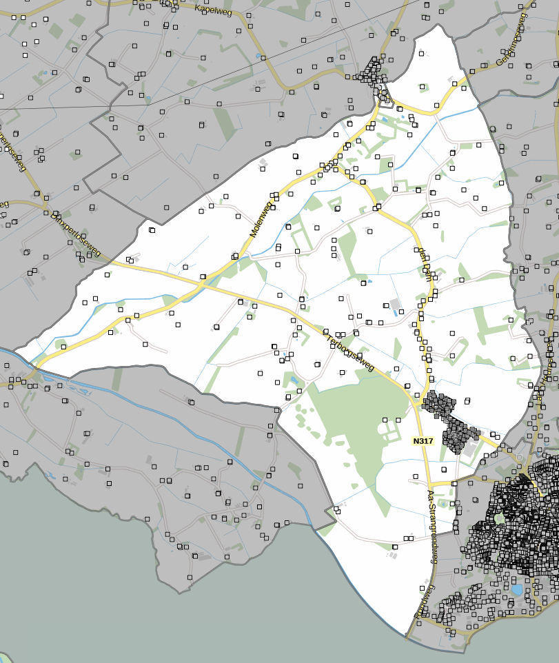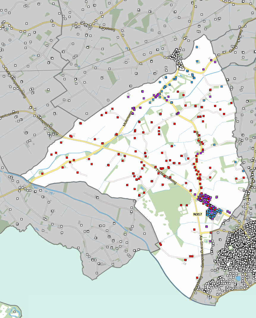 Adressen in het "Wit" gebied zijn potentiële kandidaten voor het aanleg van glasvezel. Voor Breedenbroek, zijn er 218 adressen in het ("Wit") buitengebied.