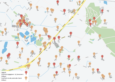 - Voor elk adres in de Heelweg, is de “postcodecheck” van Solcon gebruikt om basisdata te krijgen. Het bleek dat Solcon nauwkeurige snelheidsdata heeft.
