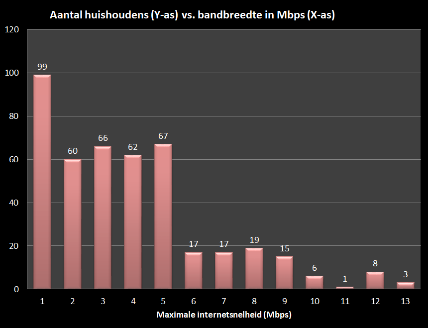 De resultaten zijn een teleurstelling: 50% van de Heelwegse huishoudens hebben niet meer dan 3 Mbps (download) snelheid. Dit is alleen goed voor e-mail en licht internetgebruik. Voor een goede ervaring met video conferencing (bijv. Skype), is 4 Mbps of meer nodig.