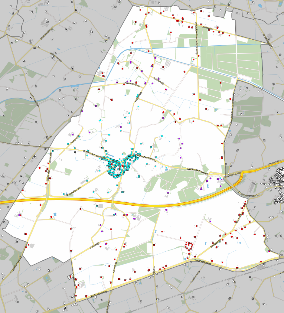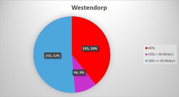 Adressen in het "Wit" gebied zijn potentiële kandidaten voor het aanleg van glasvezel. Voor Westendorp, zijn er 278 adressen in het ("Wit") buitengebied.