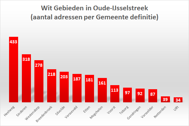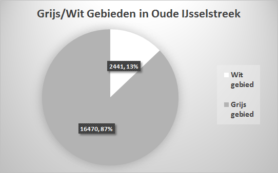 De buitengebieden in Oude IJsselstreek zijn dus "Wit". Binnen de bebouwde kommen is het vaak "Grijs", omdat sommige kernen glasvezel of coaxkabel hebben.