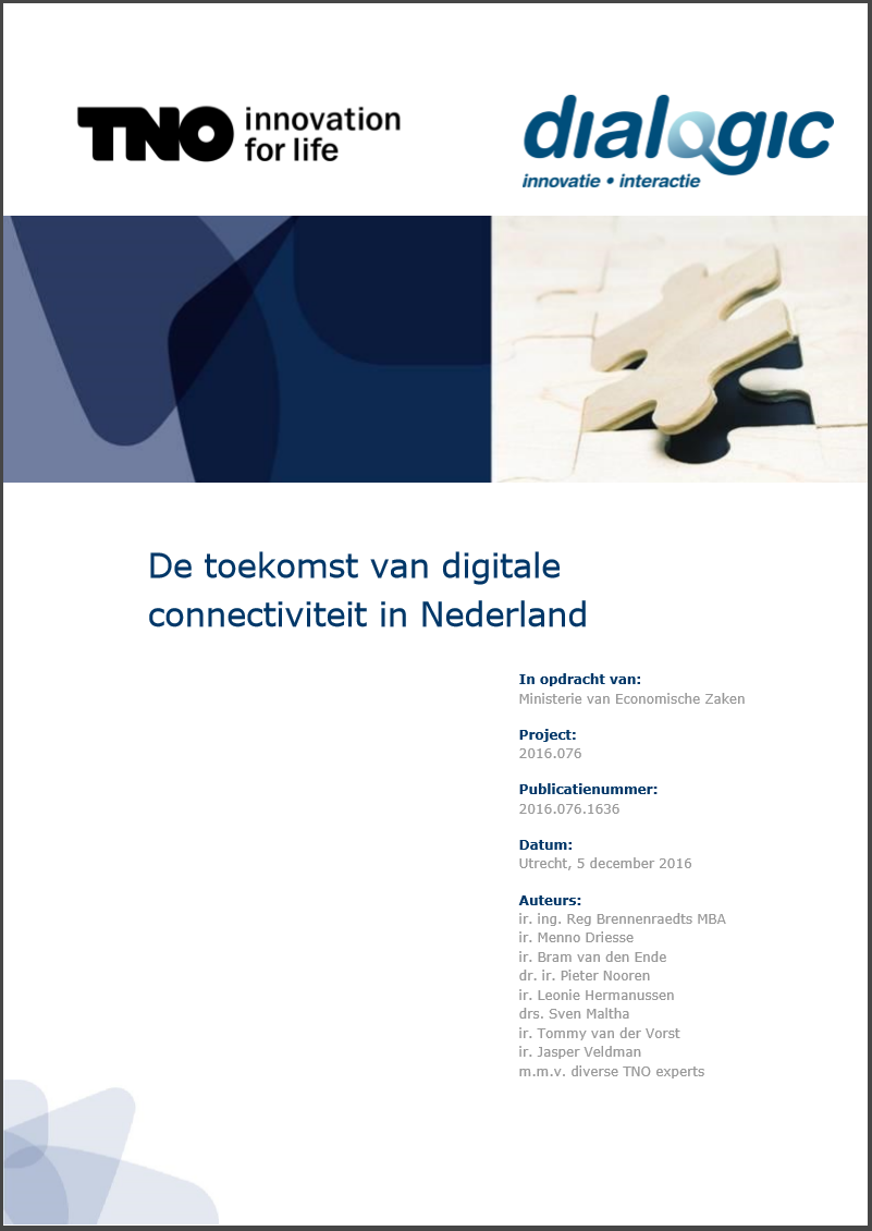 De Toekomst van digitale connectiviteit in Nederland Een onderzoek (door TNO en Dialogic in opdracht van de Ministerie van Economische Zaken) over hoe de vraag en het aanbod met betrekking tot digitale connectiviteit zich de komende 10 jaar in Nederland gaat ontwikkelen.